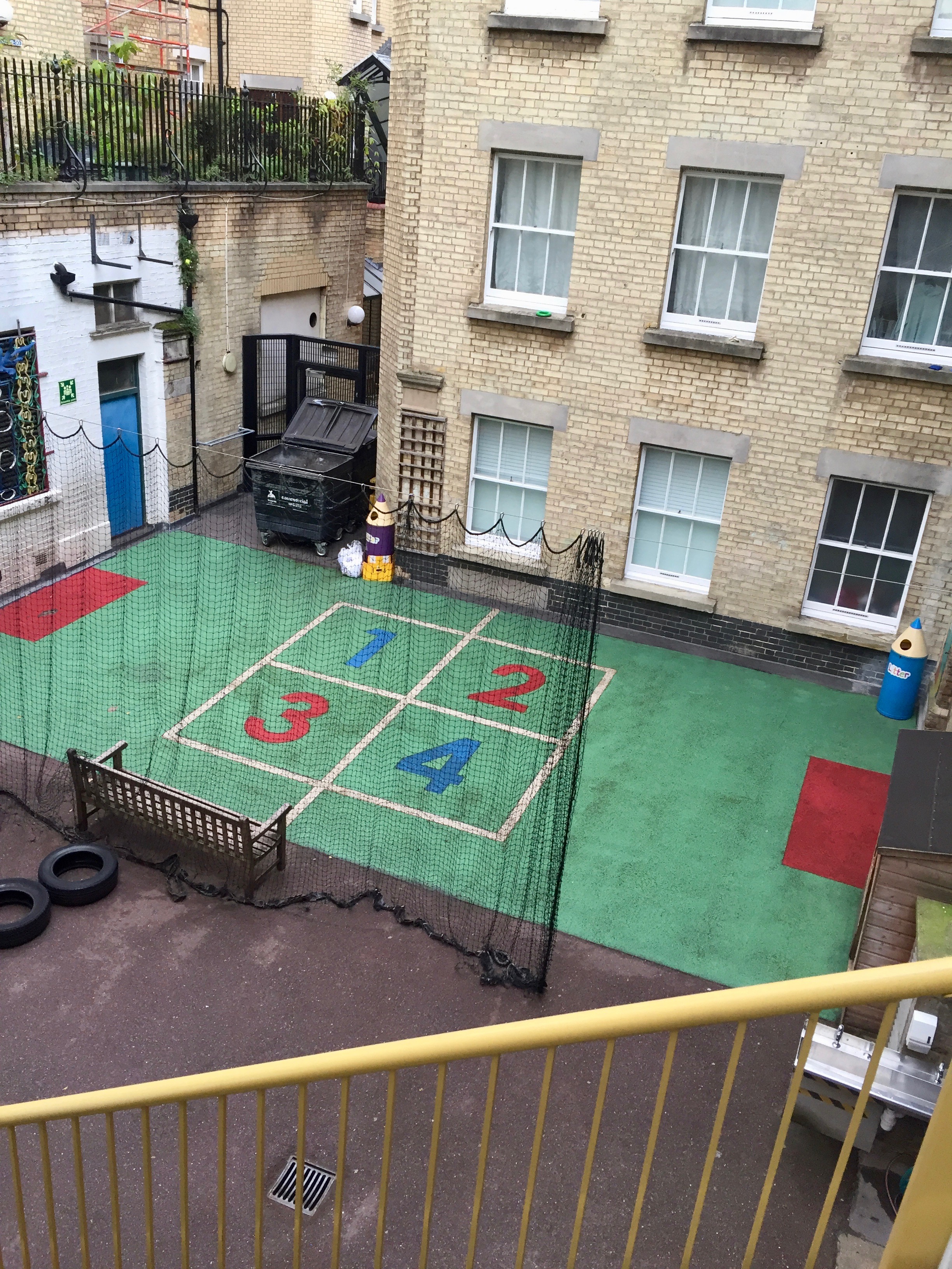 Standing in the small playground, we were surrounded on every side by offices and tower blocks which are a mix of private and social housing.