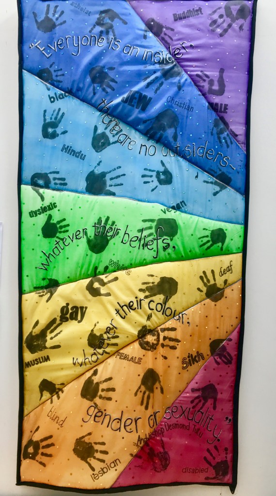 We saw artworks that focussed on the local community. KS2 students had produced these large and colourful ‘Our Jesmond’ canvasses, all signed by the students: